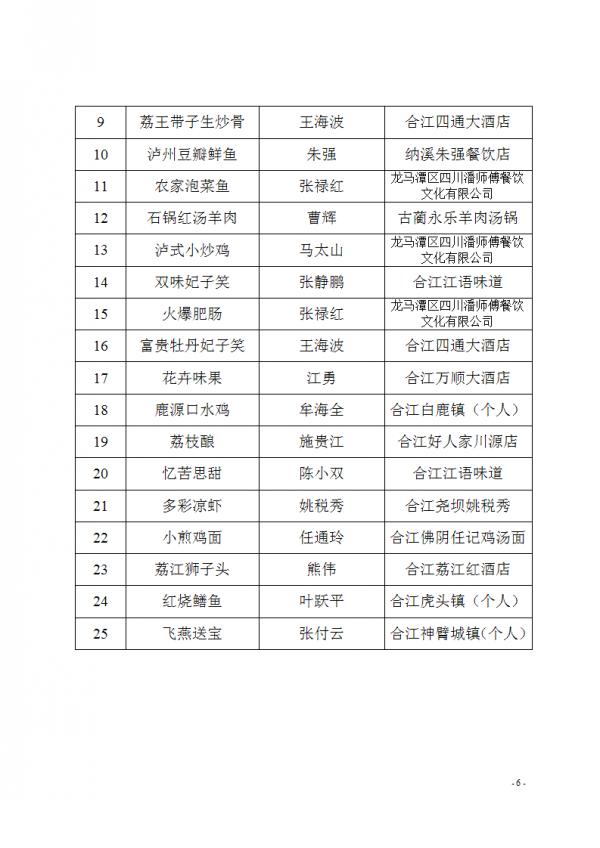 泸州市第十三届职工职业技能大赛泸菜创新比赛获奖名单