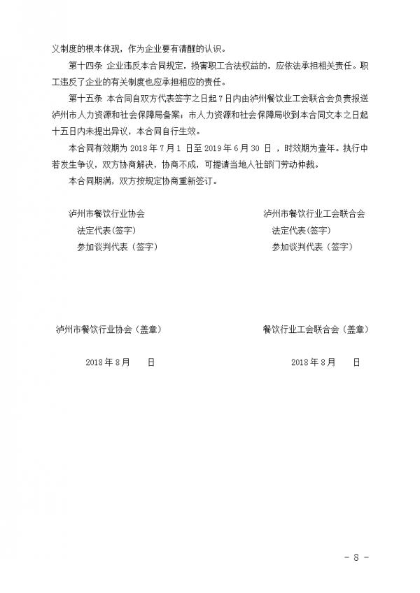 关于对“2018年泸州市餐饮行业工资专项集体合同” 进行书面协商的函